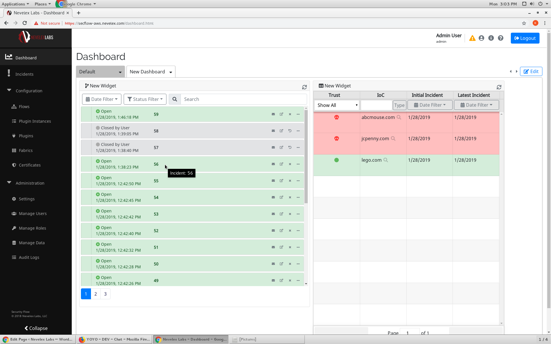 A deployed flow can be monitored on the Incidents Dashboard or the Incidents screen. An analyst may observe Incidents and respond when intervention is requested through the built in NL-Waiter node.